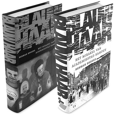 Het stofomslag van Blauw Haar heeft aan de binnen- en aan de buitenzijde elk een eigen bedrukking.